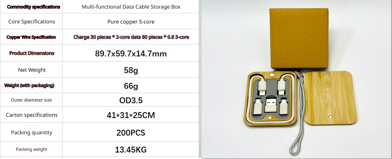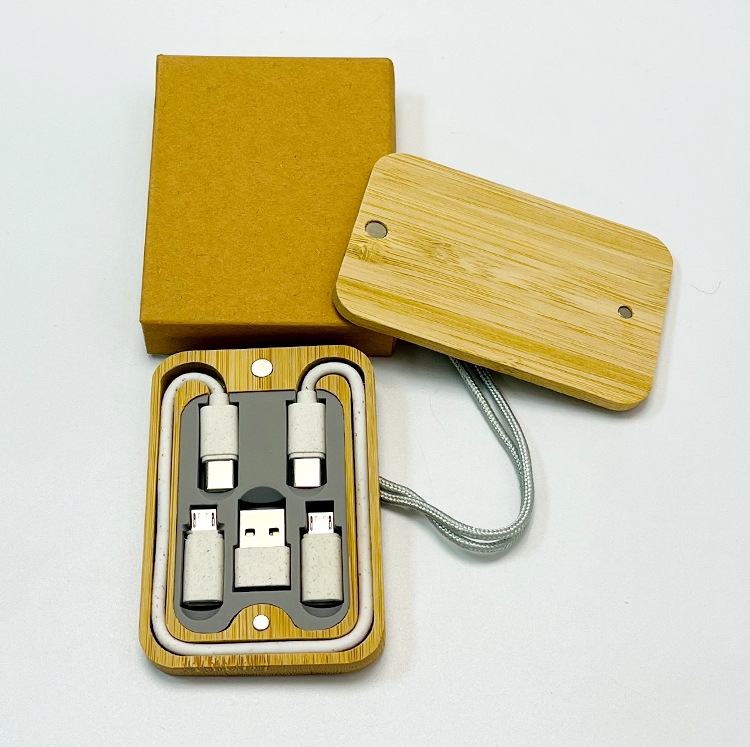 Round shape Square shape Rectangle shape bamboo wood box wheat straw 6 in 1 Multifunction Usb C Charging and Data Cable Kit 60W
