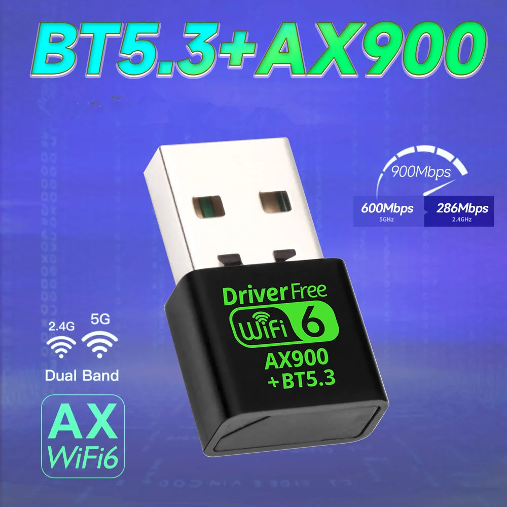 OEM AX900 WIFI6 USB Adapter Dual Band 2.4G BT5.3 Wireless USB Dongle Receiver Free Driver 900Mbps Wifi Card for Win 10/11