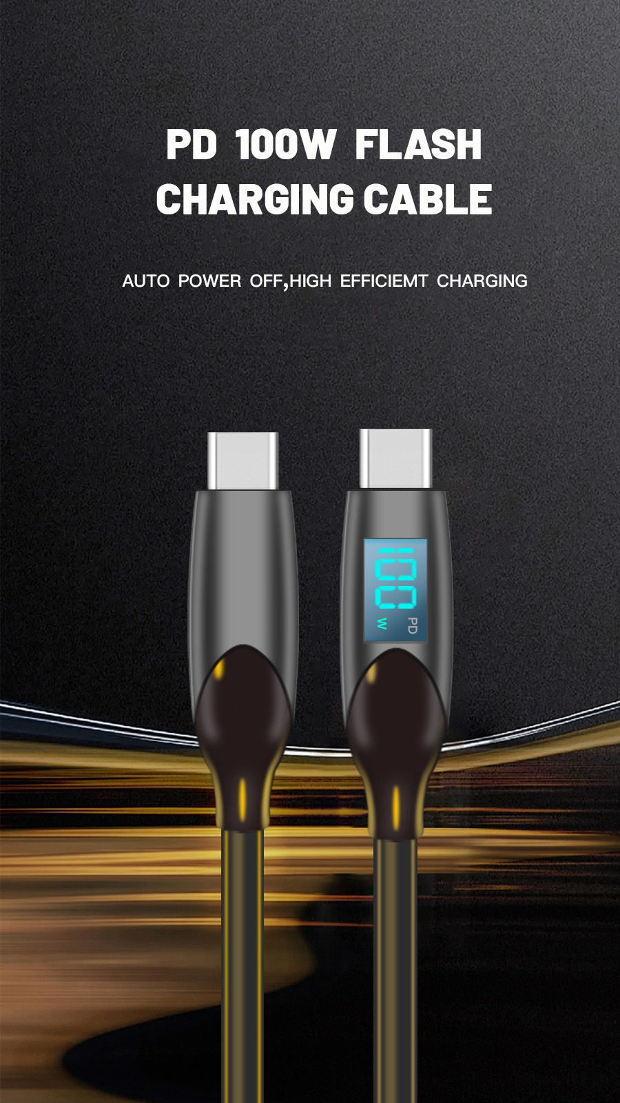 PD 100W Digital Display Auto Power Off 100W PD Fast Charging Type-C to Type-C Transparent Data Cable Usb C Cable