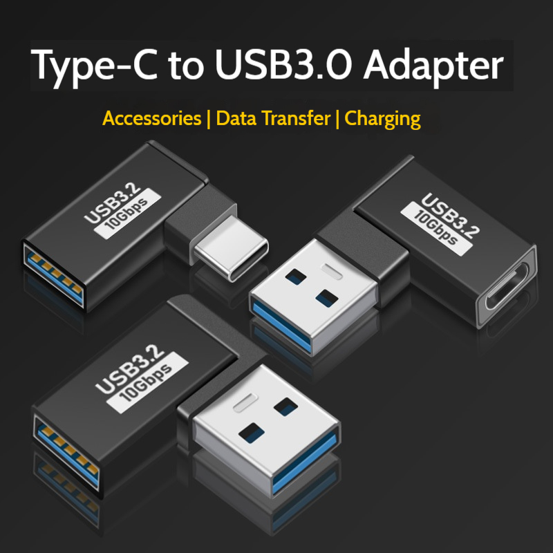 USB 3.2 Male to Female Adapter 90 Degree Right Angle Aluminum Alloy USB OTG Extension Connector 4 Types for PC Desktop Laptop