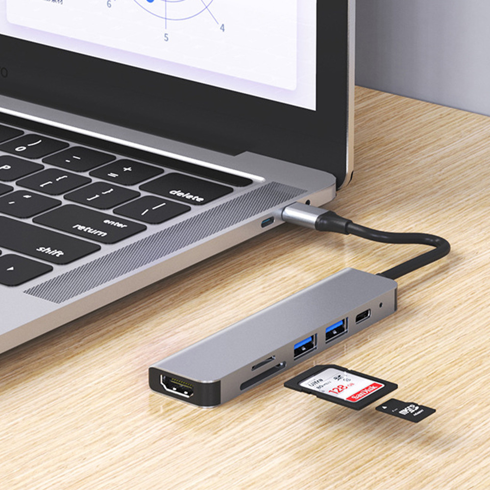USB-C Hub 6 in 1 Multi-function Type c to HDTV Hub 4K 30hz Usb 3.0 SD Tf Docking Station PD Fast OTG Card Reader Hub